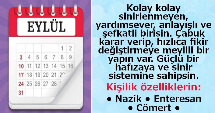 Üniversiteye gitme ve profesyonel bir kariyer yapma olasılıkları en yüksek olanlar Eylül ayında doğanlardır. Astım ve tiroit problemlerine eğilimlidirler.