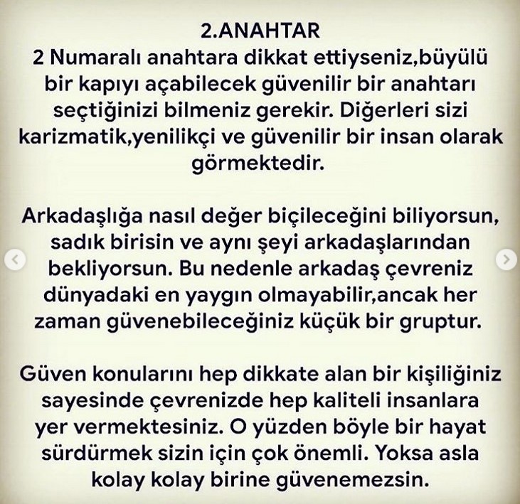 BİR ANAHTAR SEÇ, KİŞİLİĞİNİ SÖYLEYELİM