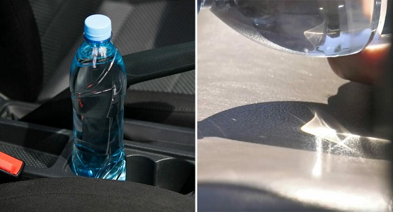 Oklahoma’da yer alan Midwest İtfaiye Teşkilatı’nın yaptığı bir deneyde aracın içine plastik su şişesi bırakıldı. Su şişesi büyüteç görevi görerek, güneş ışınlarını 120 derecelik bir sıcaklıkla aracın içine yansıtıyor. Önce aracınızın koltukları yanıp sonra da aracınız tutuşabilir.