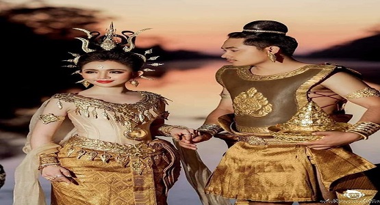 Khmer Geleneksel Kıyafetleriyle Bir Çift