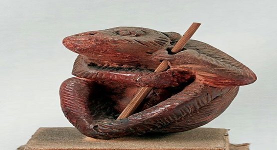 Elindeki ağaç dalıyla yukarıya tırmanır şekilde gördüğümüz heykelcikte vücut kılları, kesik çizgilerle belirtilmiş.