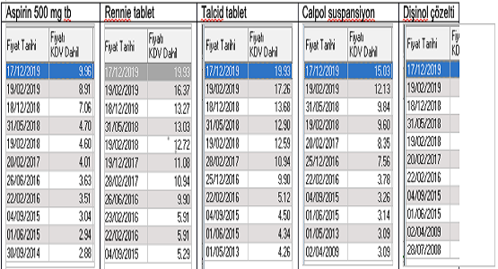 Aralarında yaygın olarak kullanılan ağrı kesicilerin, mide ilaçlarının, çocuk şuruplarının da olduğu birçok ilaca bugünden geçerli olmak zam yapıldı. Son beş yılda ard arda yapılan zamlarla bazı ilaçların fiyatları yüzde 300’ e varan oranlarda artmış oldu. 2014 de 1,44 lira olan Aspirin'in fiyatı 9,96 liraya, Rennie tabletin fiyatı 16,37’dan 19,93 liraya, Talcid tabletin fiyatı 17,26’dan 19,93 liraya, Calpol süspansiyonun fiyatıysa 12,13’den 15,03 liraya yükseldi. Aşağıdaki tabloda tarihe göre yaşanan artışlar gösteriliyor. Ayrıca yapılan zamların yanı sıra patronlara prim desteği dağıtan ve rekor zararlar eden SGK’nın tasarruf tedbirleri gereğince 134 ilacı geri ödemeden çıkaracağı söyleniyor.