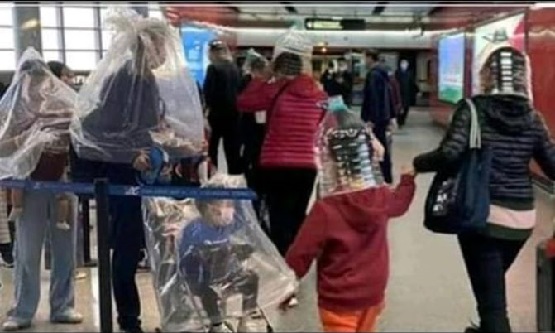 Bir virüs sebebi ile sokaklarda kafalarında pet şişe ile geziyorlar.