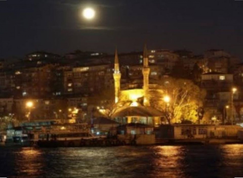 Edirnekapı camiinin tek minaresi ardından tepsi gibi kıpkırmızı güneş batarken, Üsküdar’daki camiinin ardından ay doğar!