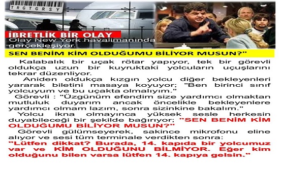 Beyefendi kimliğinizi görebilir miyim? - ne kimliği lan.. sen benim kim olduğumu biliyon mu? - hayır.. kimliği verirseniz öğrenicem.. (yaşanmıştır) devamında -amirin kim senin, ben hede hödönün amcasının oğluyum cümlesi gelmesi muhtemel laf
