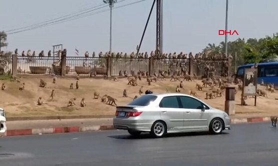 Tayland'da koronavirüs (Covid-19) sebebiyle boşalan sokakları maymunlar istila etti. Doğal yaşam ortamlarında yiyecek bulamayan yüzlerce maymun, açlıktan Tayland'ın sokaklarında yiyecek aradı, birbirine saldırdı.