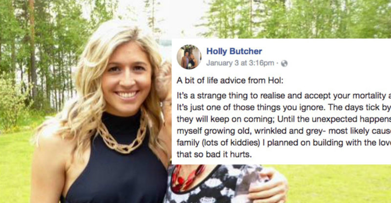 Holly Butcher isimli genç kız, 26 yaşında kansere yakalandığını öğrendikten 1 yıl sonra hayata gözlerini yumdu. Aramızdan ayrılmadan önce herkesin ders çıkarabileceği bir mektup kaleme aldı. Kimisini ağlatan, kimisinin hayata bakış açısını değiştiren güçlü bir mektup;