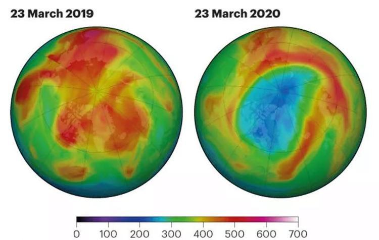 Daha önce Güney Kutbu'nda bulunan ozon tabakasının üzerindeki çatlakların koronavirüs nedeniyle büyük oranda kapandığı ortaya çıkmıştı. Ancak Kuzey Kutbu'ndaki bu görüntüne bilim insanları anlam veremedi. Güney Kutbu'nun aksine bu noktada ilk kez böyle bir şey görülüyor.