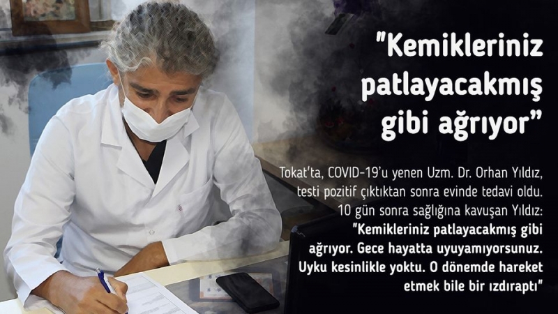 Tokat'ta, COVID-19'u yenen bir doktor arkadaşımız, hastalık sürecini şu ifadelerle anlatıyor: "Kemikleriniz patlayacakmış gibi ağrıyor." İnsan sağlığını her koşulda alt etmeye odaklanmış bu virüse fırsat vermeyelim. Kurallar en güçlü kalkanımız.
