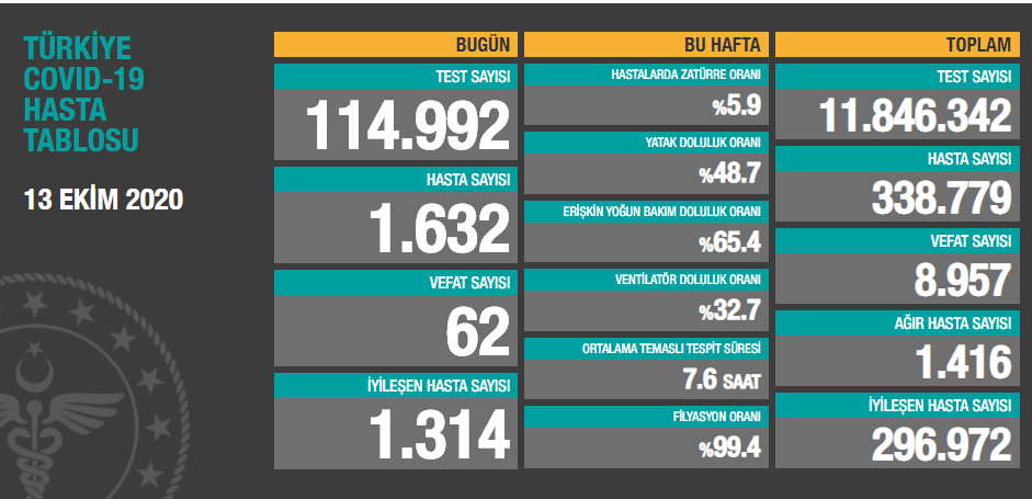 Bugün tespit edilen 1.632 yeni hasta var. Ağır hasta sayımız 1.416. Ağır hasta sayımız durağan seyrediyor. Ağır hasta sayısını azaltmak elimizde. Tedbirlere birlikte uyarak virüsün önüne geçebiliriz. Birlikte başaracağız, güvenin. http://covid19.saglik.gov.tr
