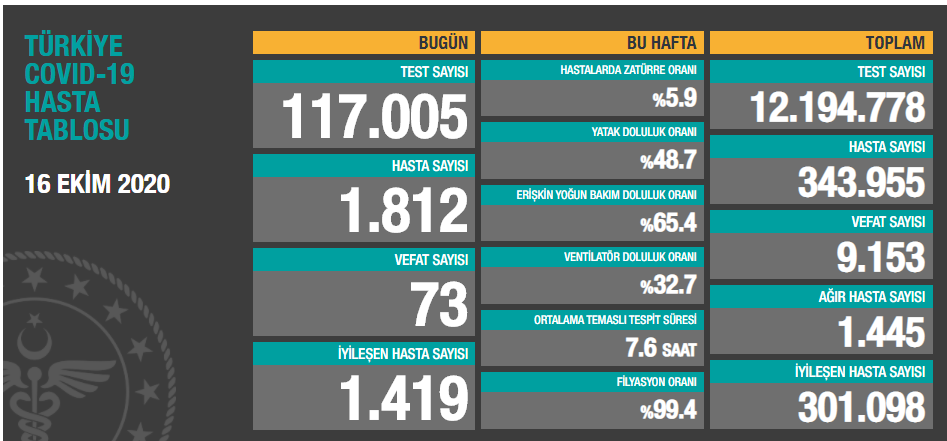 Bugün tespit edilen 1.812 hastamız var. Ağır hasta sayımız uzun bir aradan sonra artış eğiliminde. Vaka sayısı artan illerde tedbirlere uyup azalan illerde tedbirlerden taviz verirsek mücadelemiz güçleşir. Tüm bölgelerimizde tedbirlere eksiksiz uymalıyız. http://covid19.saglik.gov.tr