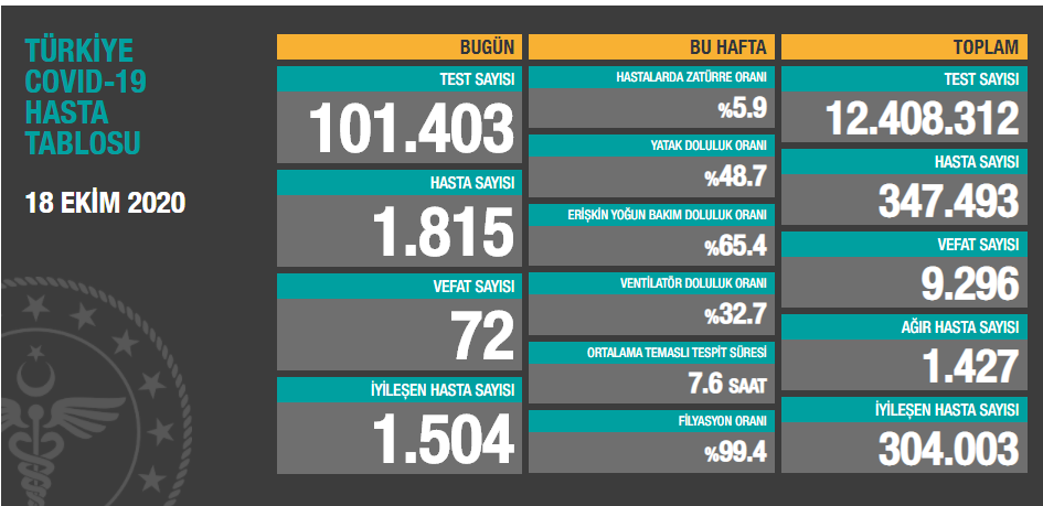 Bugün 1.500’den fazla iyileşen hastamız var. Yeni tespit edilen 1.815 hastamız var. Ağır hasta sayısı durağan seyrine devam ediyor. Aktif ve ağır hasta sayılarını azaltmak zorundayız. Tedbirlere uyarak mücadeleyi güç birliği ile sürdürmeye devam edelim. http://covid19.saglik.gov.tr