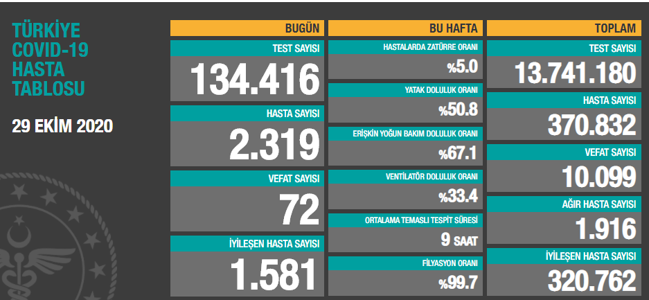 Bugün tespit edilen 2.319 hastamız var. Ağır hasta sayısı 1.916’ya ulaştı. Salgının mevcut durumu bizi hayatımızı yavaşlatmaya zorluyor. Teması üçte birine indirmek zorundayız. Birlikte mücadele edecek ve virüsü yeneceğiz. Güç verin, destek olun. http://covid19.saglik.gov.tr