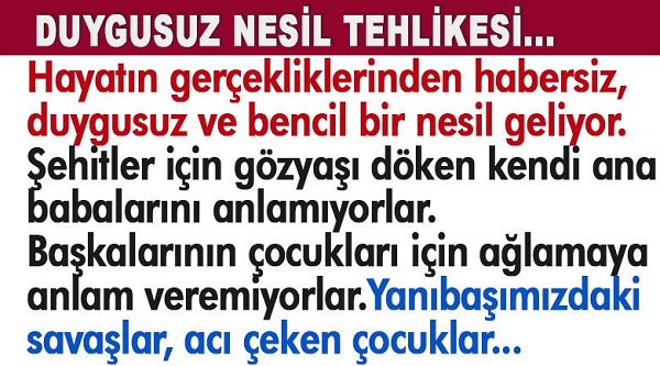 Hayatın gerçekliklerinden habersiz, duygusuz ve bencil bir nesil geliyor.