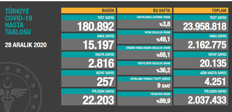 Bugün tespit edilen 2.816 yeni hastamız var. Aktif vaka sayısı düşmeye devam ediyor. Elde ettiğimiz kazanımları muhafaza edebilmek ve salgınla mücadele edebilmek için tedbir ve kısıtlamalara tam uyum şart. Birlikte üstesinden geleceğiz. http://covid19.saglik.gov.tr